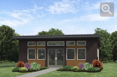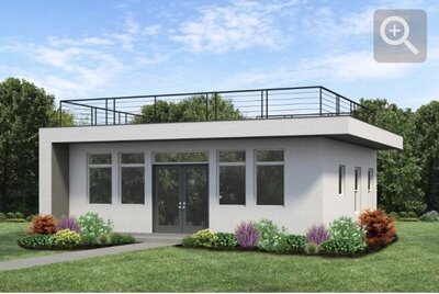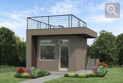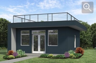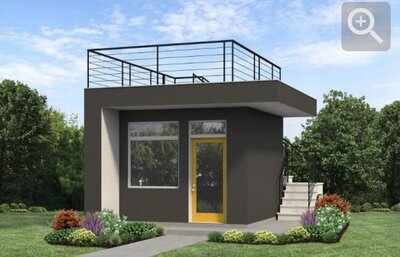 Modern rooftop living with clean lines. It includes rooftop deck to take tiny living to new heights.